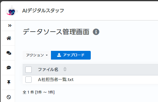 そこで、カスタムデータプランでは、お客様が管理画面からアップロードしたテキストファイルをもとに、AIが回答を行うことができます。