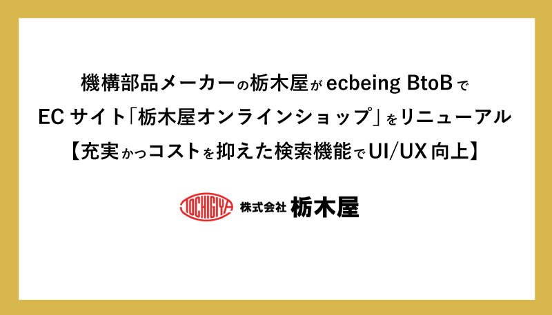 機構部品メーカーの栃木屋がecbeing BtoBで ECサイト「栃木屋オンラインショップ」をリニューアル 【充実かつコストを抑えた検索機能でUI/UX向上】