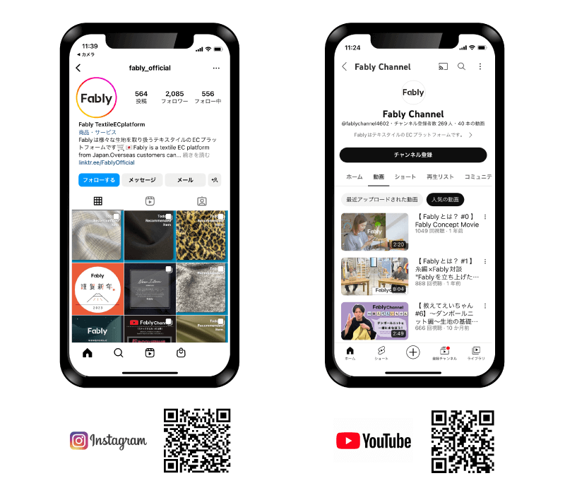 「Instagram:fably_official」と「YouTube:Fably Channel」