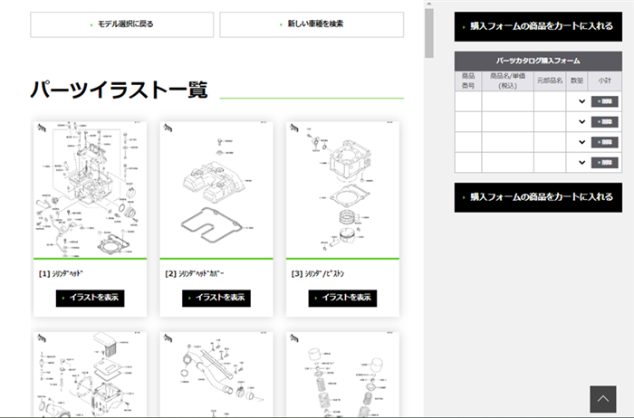 パーツカタログ検索/パーツイラスト一覧画面