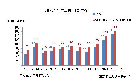 東京商工リサーチの調査によると、2022年に上場企業とその子会社が公表した個人情報の情報漏洩・紛失事故の件数は165件にのぼり、前年に比べて1.2倍増えているとのことです。同調査では、情報漏洩の原因の半数以上は「ウイルス感染・不正アクセス」であり、次いで「誤表示・誤送信」が26%、「紛失・誤廃棄」が15%を占めているとの結果も報告されています。また、業種も幅広く、製造業が最も多いものの、サービス業や情報通信業、金融保険業、小売業など、さまざまな業種で情報漏洩の事故が報告されています。これらの調査からも、情報漏洩によるセキュリティ事故が決して他人事ではないということがわかるでしょう。