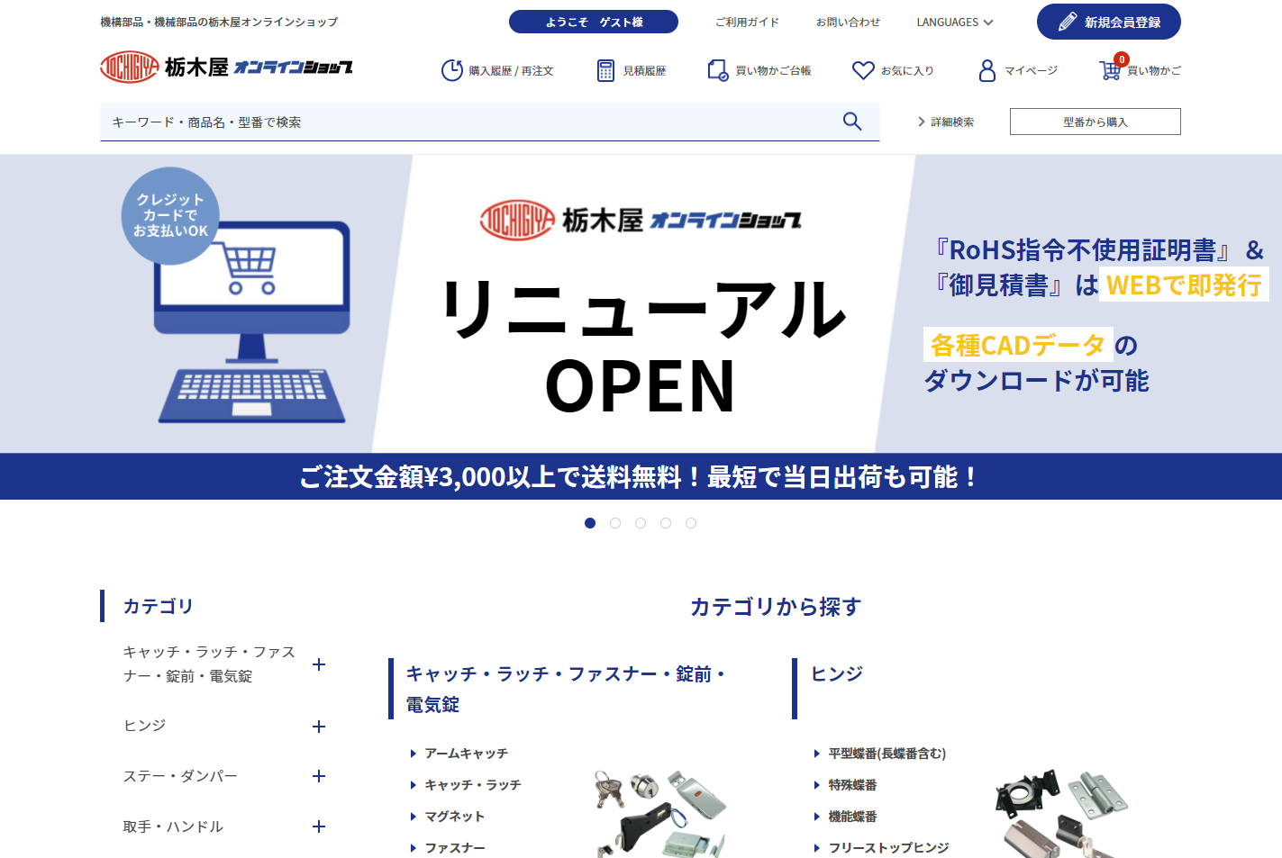 - 機構部品メーカーの栃木屋がecbeing BtoBで ECサイト「栃木屋オンラインショップ」をリニューアル 【充実かつコストを抑えた検索機能でUI/UX向上】