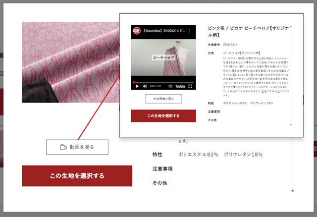 末永氏:やはりサイト上だと直接見るよりは生地の素材感がわかりづらいので、光のあて方を工夫するなど生地写真の撮影レギュレーションの再考を行いました。また、動画を埋め込み、より立体的に見えるように工夫しました。それでもやはりわかりづらいというお声もあるので、生地サンプルの送付も行っておりまして、お客様にご満足いただいています。