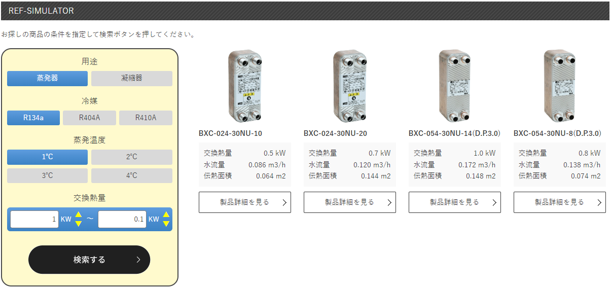 その他としては、サイト上にWEB SIMULATORとREF SIMULATORというシミュレーターを2種類⽤し、お客様がどの熱交換器を購⼊すればよいか迷ったときに⽤途や温度などから簡単に製品にアクセスできる機能を⽤意することで、熱交換器に詳しくないお客様であってもサイトを利⽤しやすいようにしています。