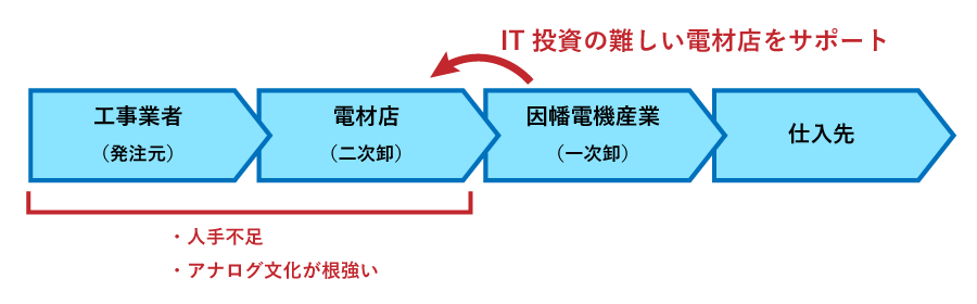 工事業者(発注元)と電材店(二次卸)間のDX化