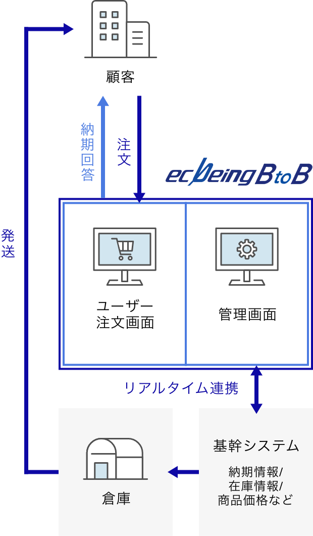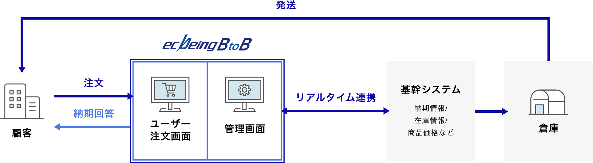 - 基幹システム上の在庫数や商品価格、納期などの情報をBtoB ECで表示
