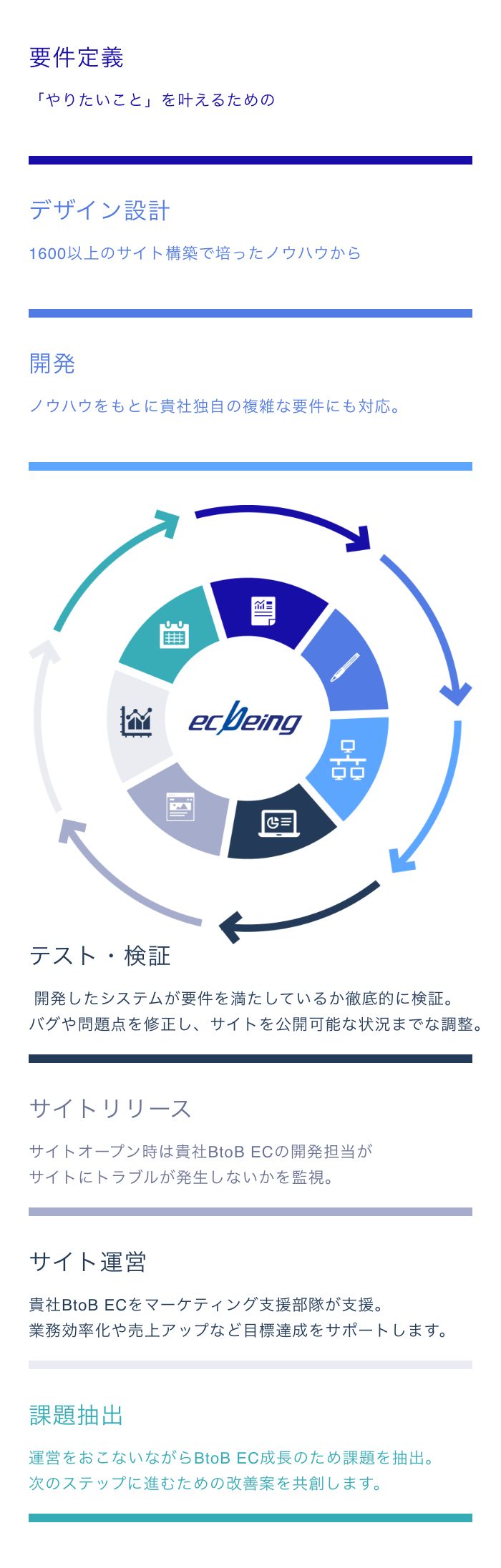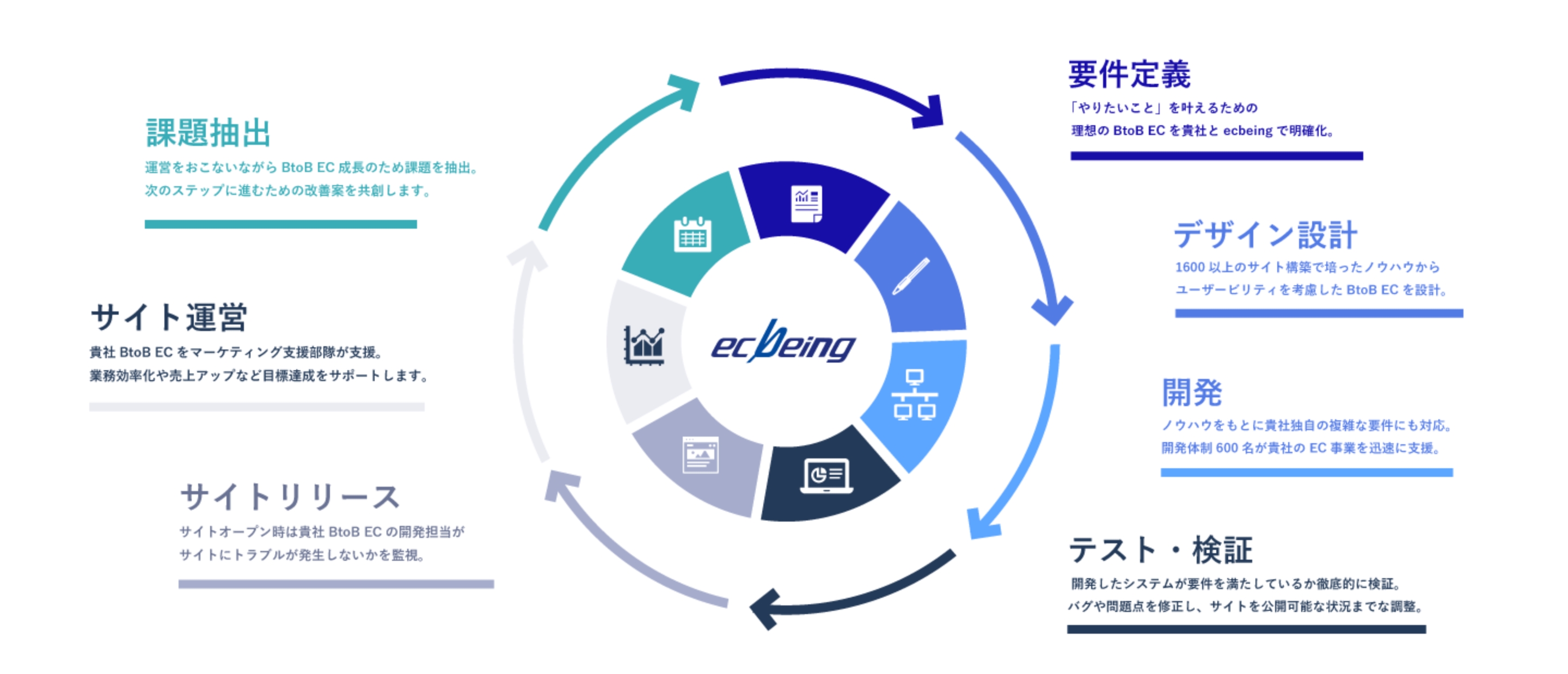 BtoB専用プラットフォームとして長年にわたり様々なBtoB ECを構築してきた中で培ったノウハウをお客様に還元。