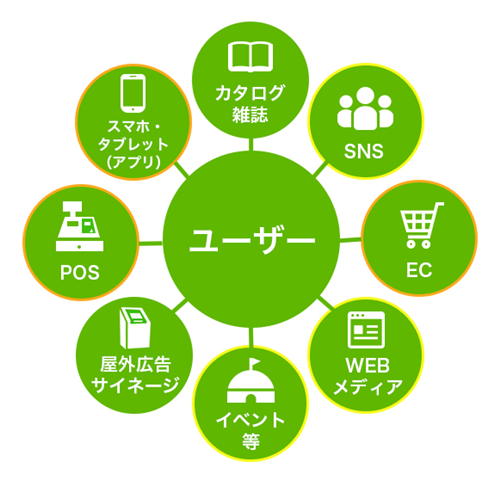 ユーザーとの接点となるチャネルには、実店舗やECサイト、スマートフォン・タブレットのアプリなどがあります。ユーザーの要望に沿って複数のチャネルを用意するマルチチャネルとは違い、オムニチャネルは複数のチャネルに加えて在庫管理やユーザー管理などを統合し、ユーザーにシームレスな購買体験をもたらします。言い換えると、ユーザーが「いつでも」「どのチャネルでも」一貫して商品情報や実店舗の情報、商品を購買できる状況をつくりだすということです。まず最初のオムニチャネル施策としては実店舗とECサイトの会員の連携(一元化)ということがポイントとなってきます。その後は在庫連携を行なったり、他のチャネルと連携し、すべてのお客様の接点において購買ができるポイントをつくっていくことです。