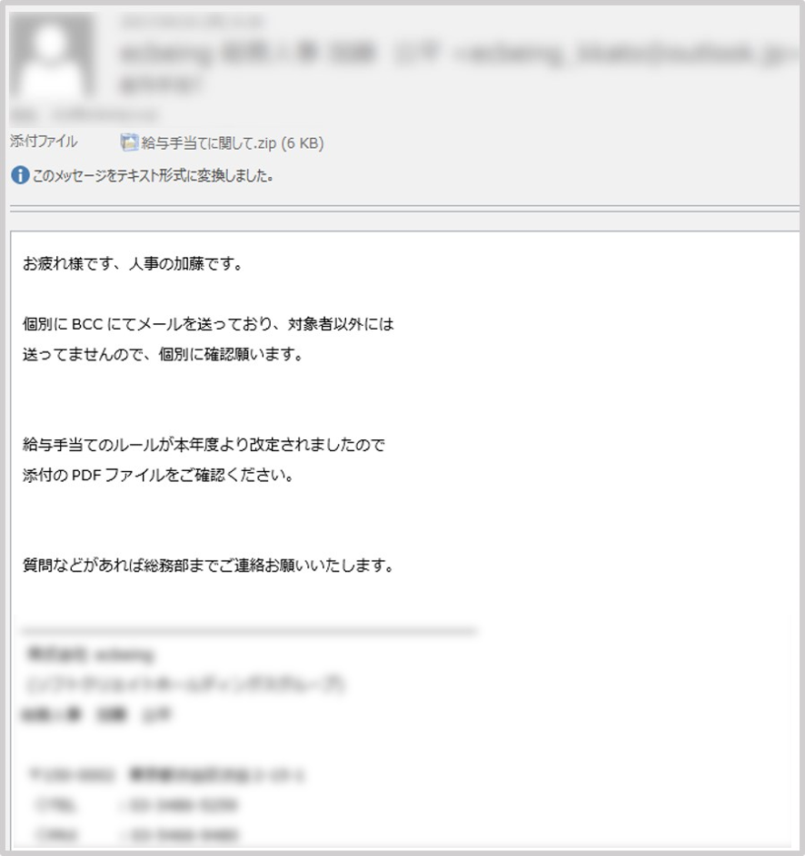 ※こちらのメールはecbeing内のセキュリティに対する社内テストの一例です。ecbeingではセキュリティに対し責任ある立場として、セキュリティ対応テストを社内で定期的に行っております。