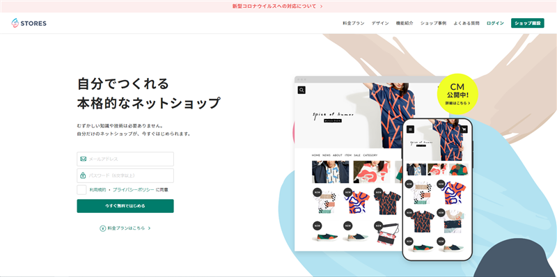 STORESはストアーズ・ドット・ジェーピー株式会社の提供する、BASEより少し前に提供が開始された、決済手数料が比較的安い無料のネットショップです。 フリープラン、スタンダードプランのプランから目的に合ったものを選び、使用することができます。決済手数料が3.6%と業界最低水準であることも特徴です。