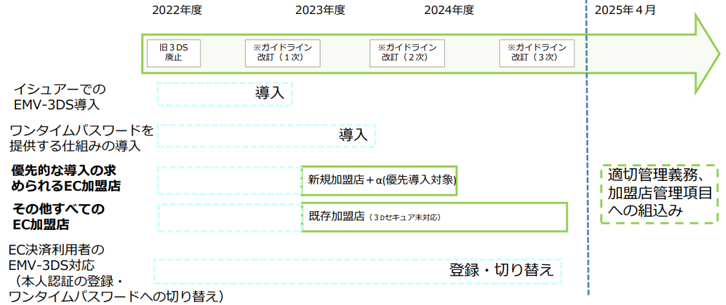 これにより、先述の通りカード会社が環境の整備をしながら2025年をめどに全EC事業者の導入を目指すことになりました。