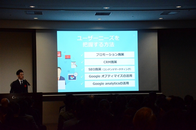 ECシステム構築後にも、ecbeingはサイトデザイン、サイト分析〜サイト改善、プロモーション、運用支援などワンストップで提供しております。1,000サイトに導入をいただいているecbeingの数々のEC事業者様を支援してきた企画制作本部 部長の森が登壇させていただきました。ECサイトの「One to Oneマーケティングを制する者はWEBを制する!」ということで、Web接客&ABテストツールであるGoogleオプティマイズを活用し、ユーザーニーズに応えた成功事例を発表させていただきました。