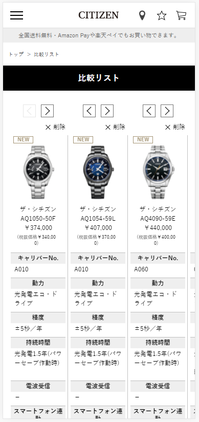 齋藤:腕時計購入を検討するうえで、各モデルの性能を比較できる機能は必須です。もともと表示順入れ替えなど機能面は充実していたのですが、今回パッケージに載せ替えるにあたり、機能を引継いだだけでなく、UIデザインも改修しました。特にスマホについては、デザインを工夫して可能な限り多くの情報が一画面内に入るよう、多くの項目が比較できるように一覧性を高める工夫をしています。