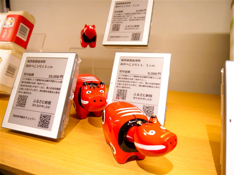体験しにお伺いした2022年1月12日段階では福島フェアを行っており、福島にちなんだ赤べこなどの伝統工芸品からご当地のお酒やお菓子などの食品まで豊富に取り揃えていらっしゃいました。