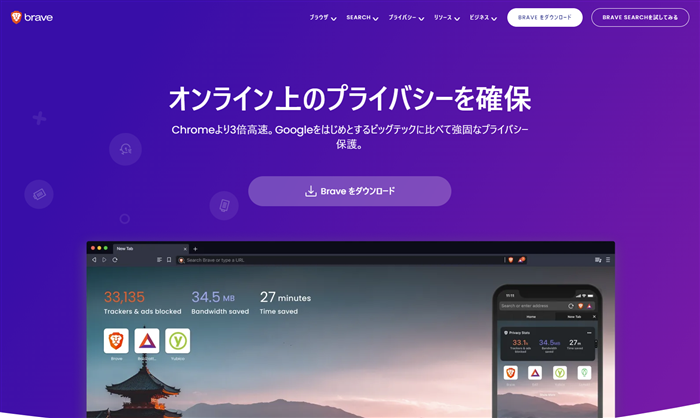 続いて挙げられるのが、「次世代のGoogle Chrome」とも称されるブラウザ「Brave」です。