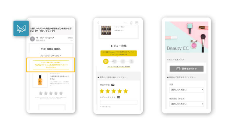 1. 集める :レビュー依頼メールの自動配信、ReviCo独自のインセンティブキャンペーンを実施