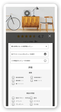 レビューは、CV(コンバージョン)アップだけでなく、CS、顧客ロイヤルティの向上、返品率の低下等の効果も期待できます。