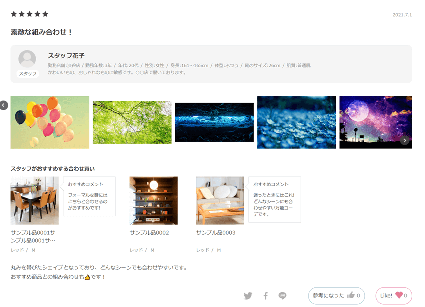 3. 魅せる :TOP、一覧ページ、LPなどさまざまな形で訴求でき、スタッフレビューやスタッフおすすめ商品の掲載も可能