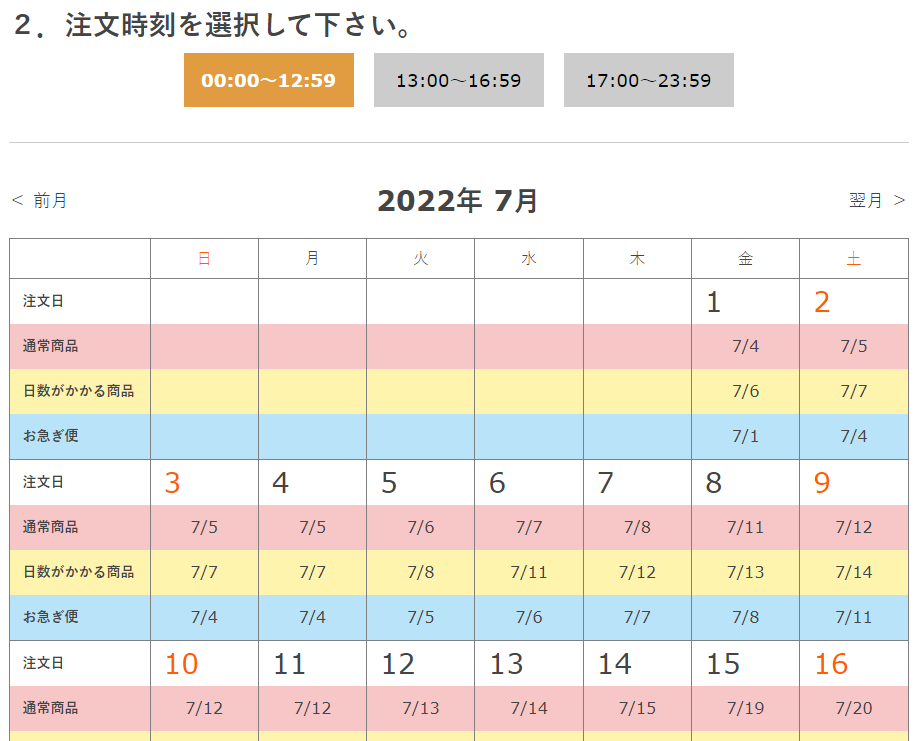 ――ニュートリー公式通販では、注文日と注文時間を基に商品発送予定の目安をカレンダーで確認することができます。