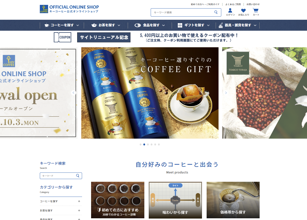 「キーコーヒー公式オンラインショップ」をリニューアル