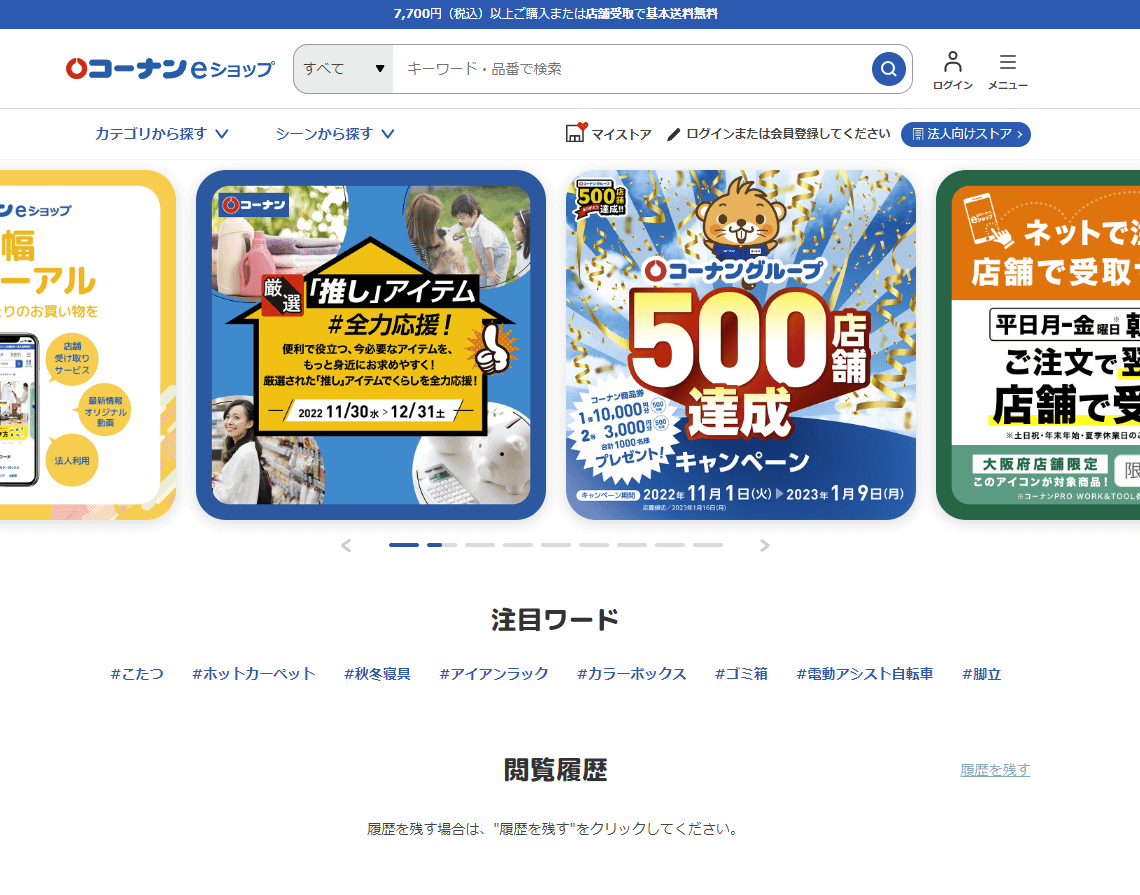 そんなコーナン商事様が運営するECサイト「コーナンeショップ」は、2013年からecbeingをご利用いただき、2022年10月には同システムでリニューアルを行いました。