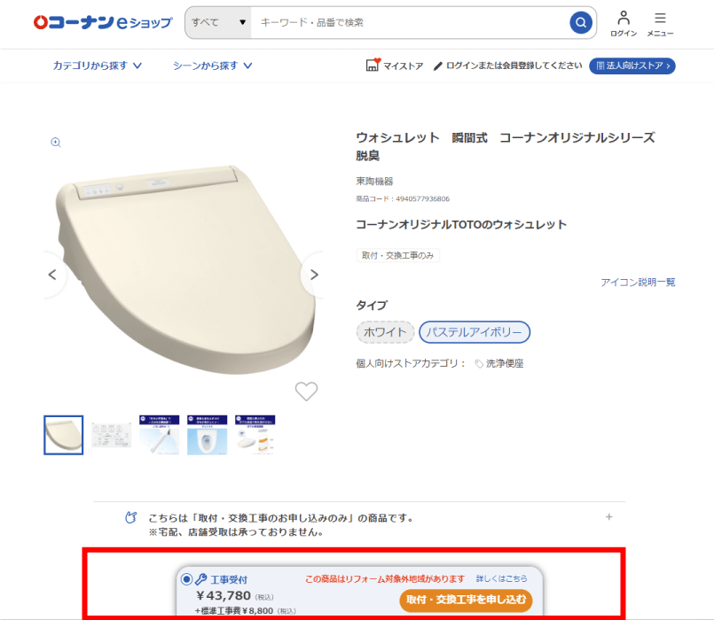 コーナンeショップでは、住宅設備や水道用品などの取付け・交換工事が発生する商品を購入する際に工事受付まで行えますが、このサービスの詳細と今回のリニューアルにおける改修ポイントについて教えてください。