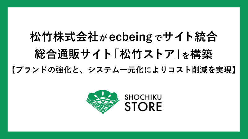 株式会社ecbeing (イーシービーイング 本社:東京都渋谷区、代表取締役社長:林 雅也、以下「弊社」)は、 14年連続EC構築プラットフォームシェアNo.1※1のEC構築プラットフォーム「ecbeing」が、松竹株式会社(本社:東京都中央区、代表取締役社長:迫本 淳一)の運営する総合通販サイト「松竹ストア」に採用されましたことを発表いたします。