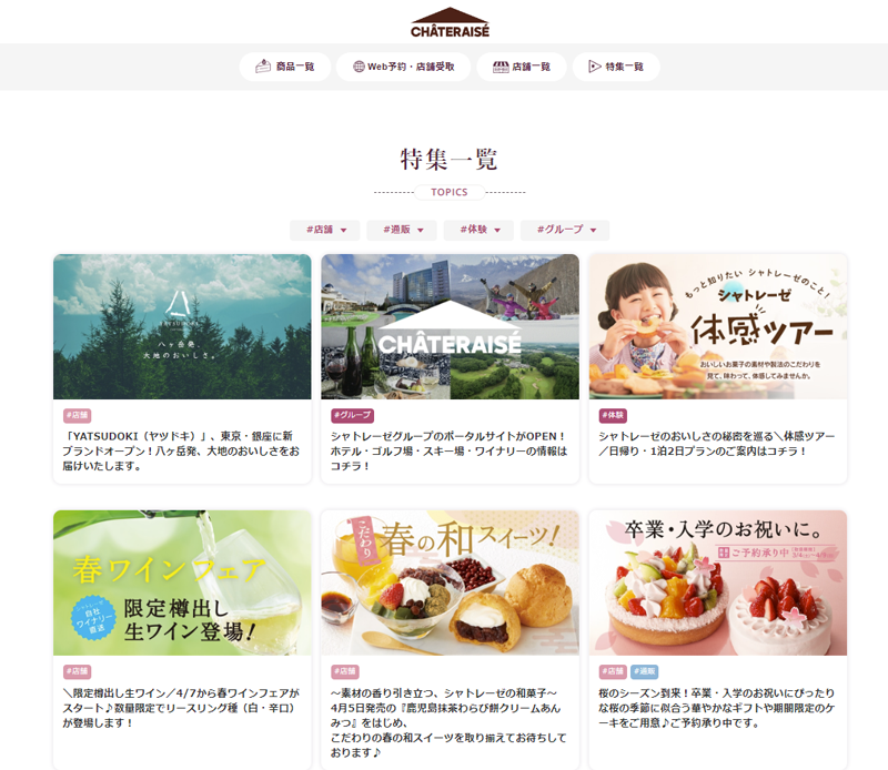 さらにイベント、キャンペーンの情報やシャトレーゼブランド体感ツアーの告知・募集など、メディアコマースとしての情報発信も同一サイト内で実現しました。