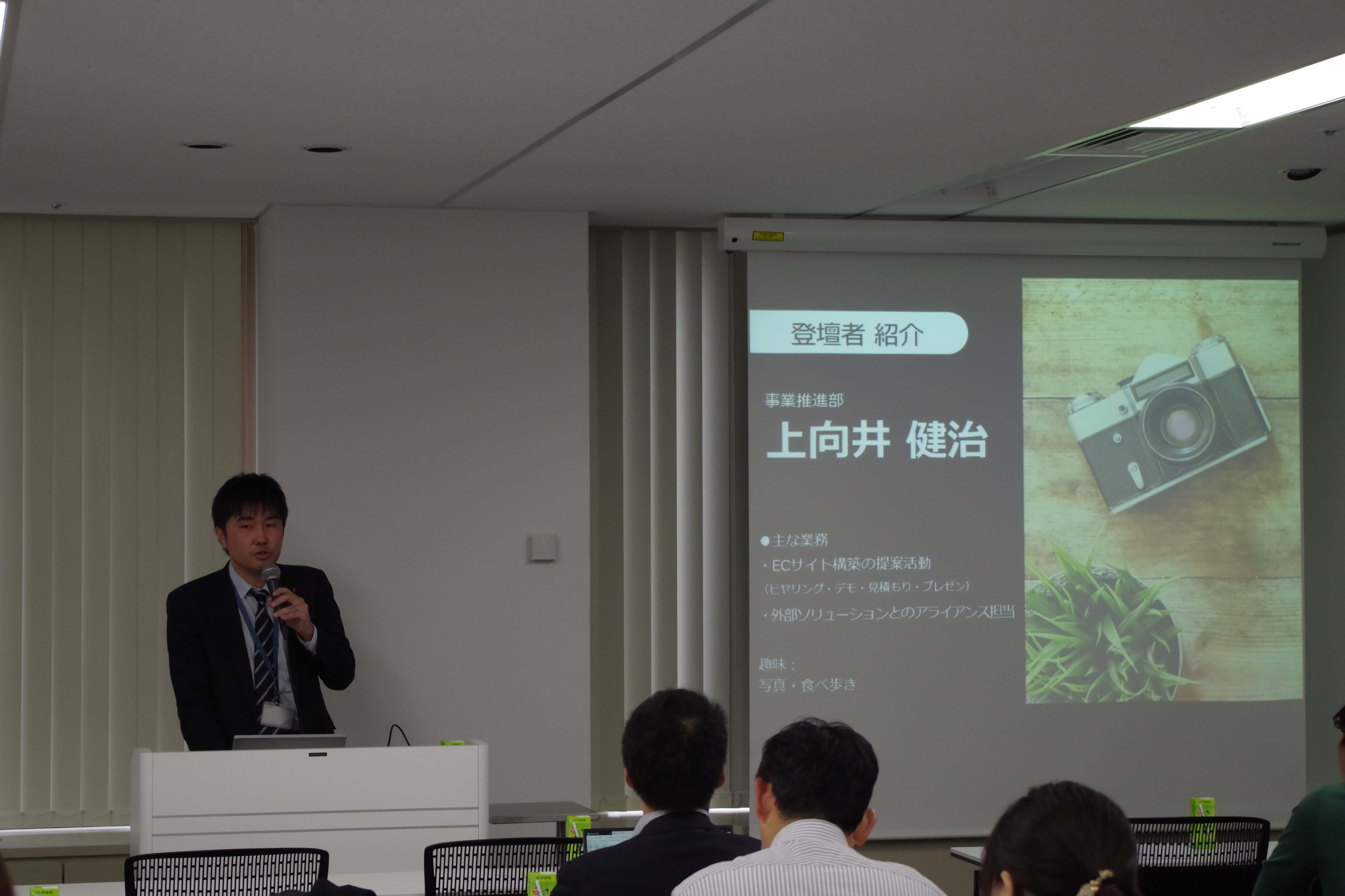 開発出身で数々のECサイト構築を手がけている、ecbeing事業推進部 部長代理 上向井が登壇をさせていただきました。