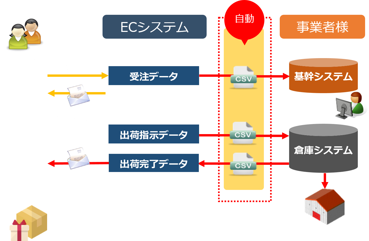サイトを構築した当初は注文数があまりなかったが、増加につれ現状の画面操作では時間がかかり過ぎて処理しきれない。や、今はECシステムから倉庫への出荷依頼や基幹システムへの売上登録を手動で行っているが、運用負荷が高くなってきたので自動化したい!など、外部システムと連携し業務効率化を図りたいというお声も大変多くございます。ECサイト運営において、このような業務は極力簡素化し、商品企画やマーケティング施策など売上アップ施策に注力しましょう!