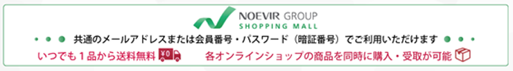 『NOEVIR GROUP SHOPPING MALL』では、複数のオンラインショップの商品をまとめて購入することができます。各ショップでメールアドレスや会員番号などが連携されているため、ユーザーは何度も会員登録を行う必要がありません。