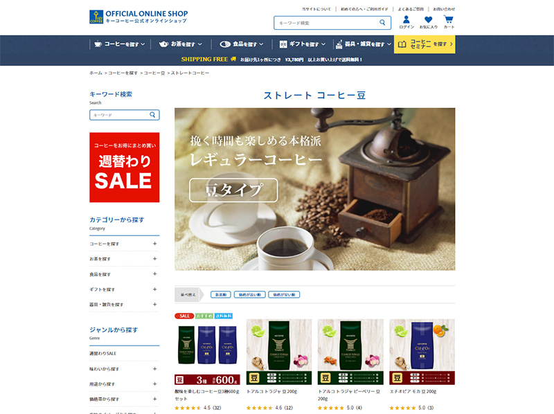 阿部氏:過去運用していたECサイト「通販倶楽部」はデザインが古く、導線も分かりづらいことが課題でした。検索性もなく、使い勝手が悪かったです。また、「通販倶楽部」という名前も含めサイト全体でキーコーヒーらしさがなかったので、リニューアルでは視覚的にも名前的にもキーコーヒーの直営サイトであることを伝えるように意識しました。