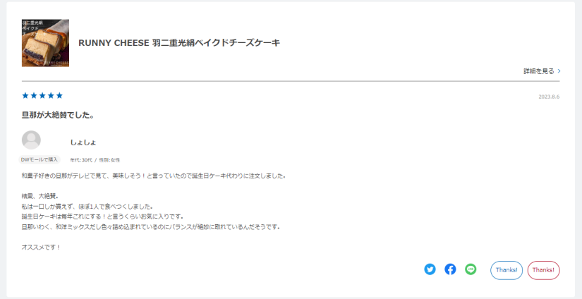 導入から1年たち、お客様のお声が蓄積されてきていますが、好印象なお褒めの言葉を多くいただいており、購入を検討しているお客様にもプラスに働いていると感じています。VOCとして活用できるコンテンツなので、ただ収集するのではなく、今後はマーケティングに活かしていこうと考えています。