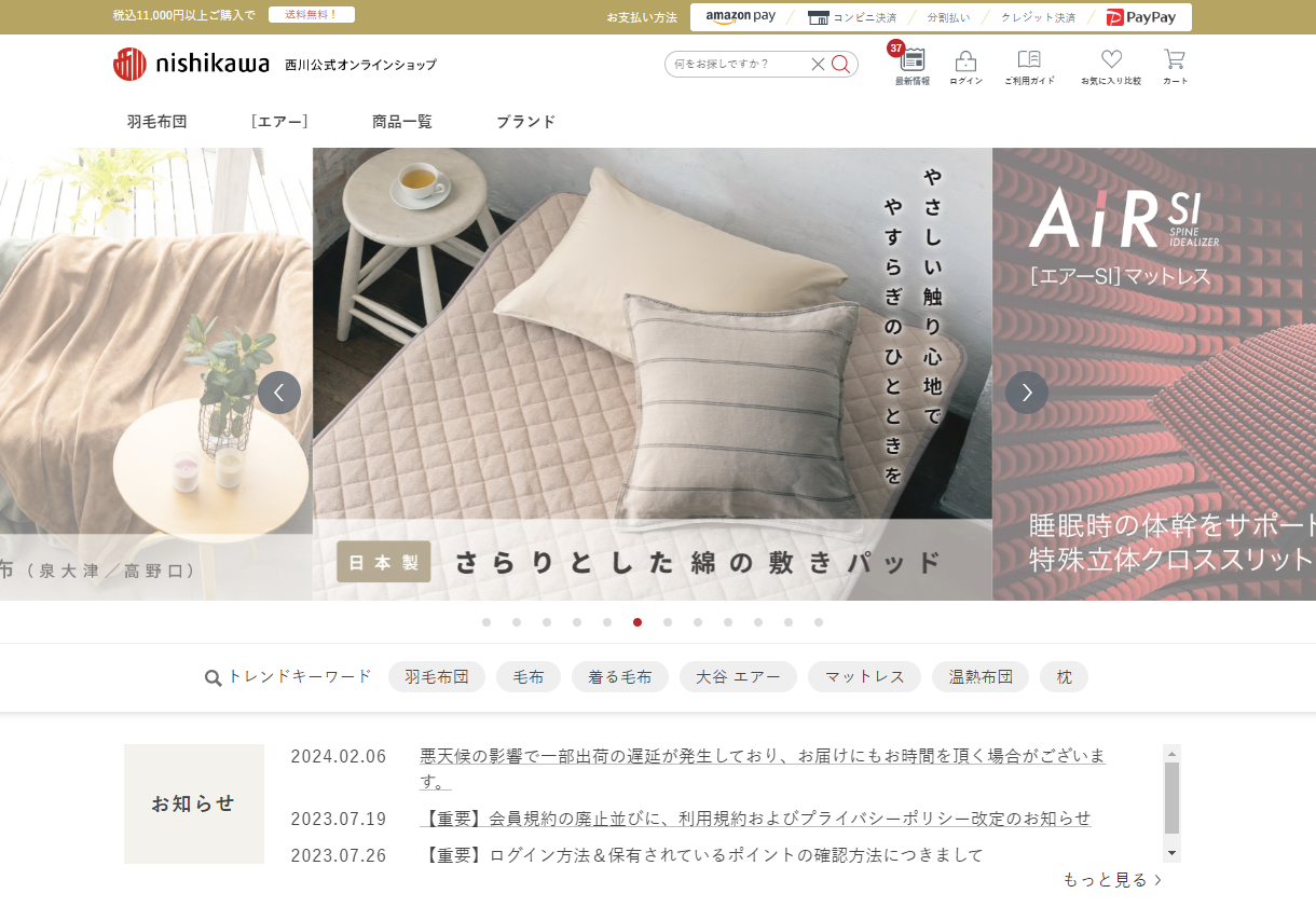 三浦氏:弊社の主な事業は百貨店や量販店、町の布団屋さんなどへの卸業になります。その中でECサイト導入以前のデジタル関連の取り組みは、ホームページ内であくまで商品カタログを掲載する程度で購入はできませんでした。