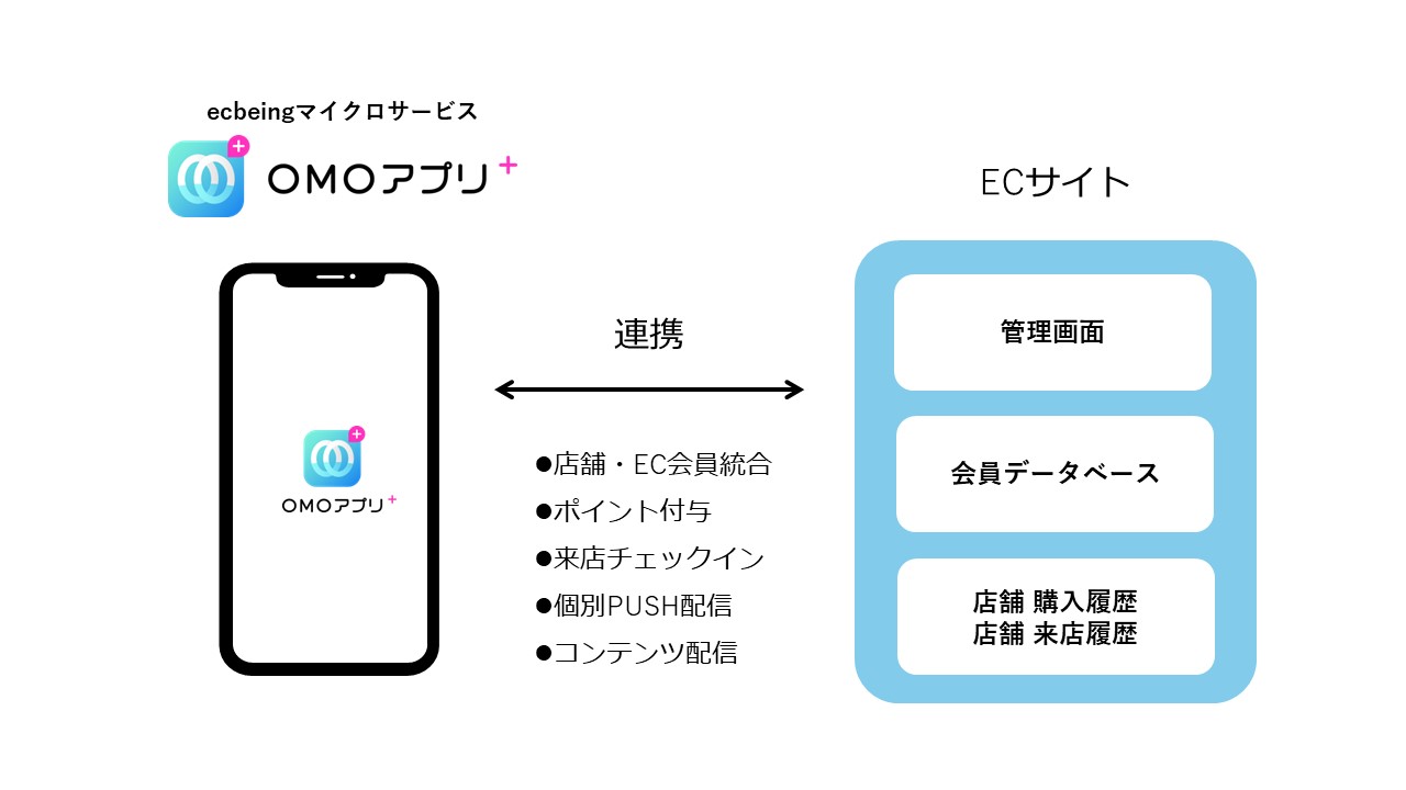 「OMOアプリ+」は店舗とECを繋ぐマーケティング特化アプリです。店舗・ECの顧客情報を共通管理でき、適切な会員セグメントでマーケティング施策をおこなうことが可能です。会員証の表示やポイントの付与、PUSH通知機能など豊富な機能を標準でご用意しております。