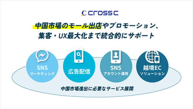 ※4:株式会社クロスシーは、ソーシャルメディア上で活躍するインフルエンサーによる中国市場向けのマーケティング事業をはじめ、中国の主要ソーシャルメディアである微信(WeChat)、抖音(Douyin)、小紅書(RED)等のプラットフォーム上でのEコマース市場が成長している中国市場に向けて日本企業の効果的な越境ECによる海外拡販を支援。