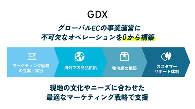 ※3: GDX株式会社は2007年の創業以来、一貫してグローバルビジネスを展開するメーカー・小売事業者にEC・オムニチャネル小売販売支援サービスを提供するグローバルDXベンダー。GDX株式会社のグローバルEC支援サービスは、越境ECは世界170カ国超で、海外現地でのECは東南アジアやインド、アメリカを主に38カ国にて展開。