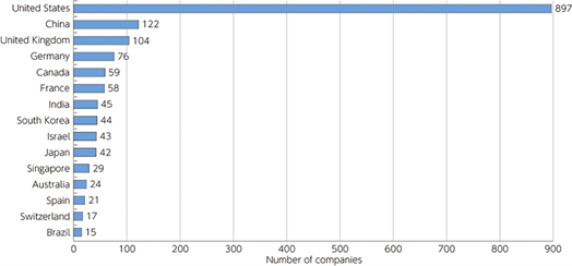 AI関連企業への投資は活発化しており、スタンフォード大学が公表した報告書「Artificial Intelligence Index Report 2024」によると、2023年に新たに資金調達を受けたAI企業数は、米国が897社で1位、中国が122社で2位、日本が42社で10位となっています。