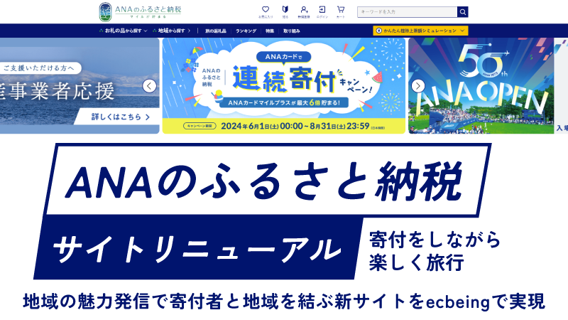 ANAのふるさと納税サイトリニューアル 寄付をしながら楽しく旅行 地域の魅力発信で寄付者と地域を結ぶ新サイトをecbeingで実現
